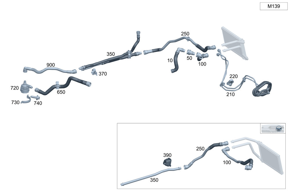 Connecting point to coolant pump.
